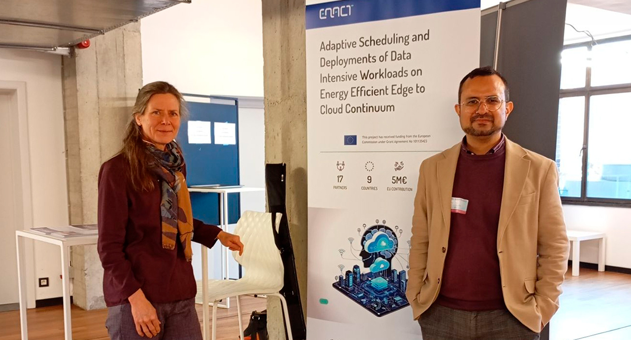 ENACT’s presence at the summit included a dedicated exhibition booth where attendees were able to explore the project’s three use-cases, engage with the team and witness first-hand how cutting-edge research is translated into tangible outcomes. Our partners from Innovalia Association, and our colleagues Diego Ospina and Annedoor Herpels represented ENACT on-site, interacting with visitors and demonstrating how ENACT is advancing distributed intelligence, orchestration and data sovereignty in the computing continuum.
